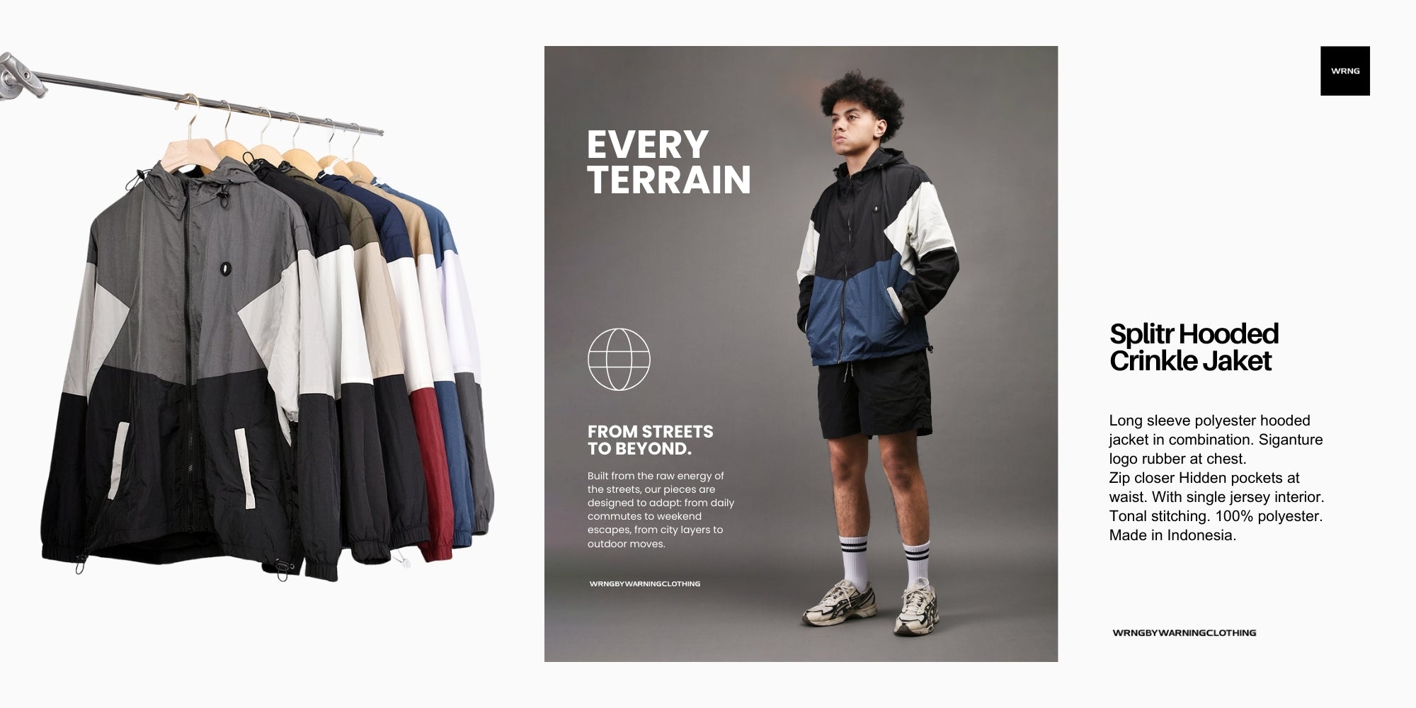 "Warning Clothing was established in 2000, stood at the beginning we aimed to raise awareness about local products that become stronger in Indonesia, inspired by all the elements, such as music, movies, lifestyle, and culture. We try to put them all into an aesthetic that is more emotional bandage, flicked, and the criticism circumstances of time. By lifting the concept of "slice of life", we intend for us to continue to accompany the journey of life in every era, framing, convey and interpret life in a unique way".