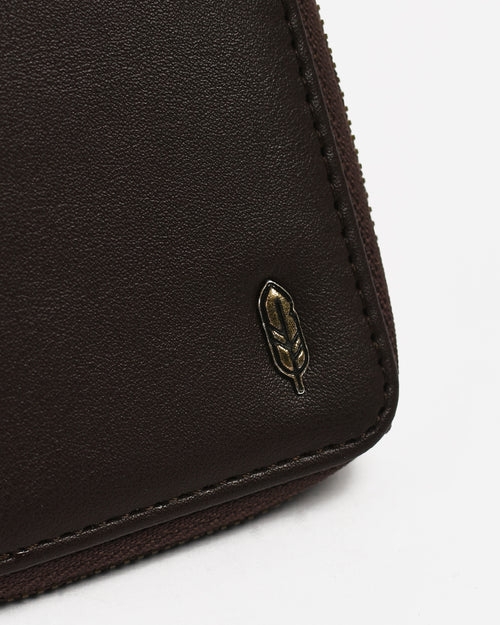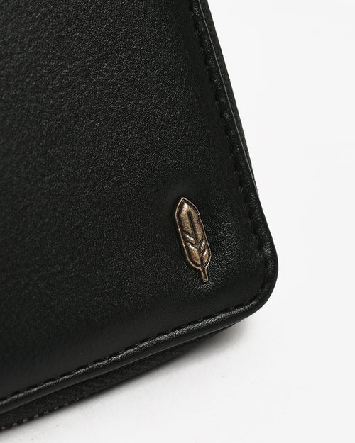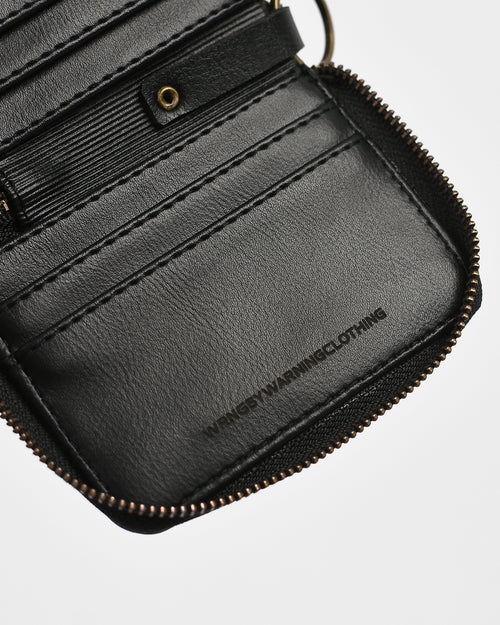 Zipper card holder wallet in black. Signature metal logo at the front. Keychain funcion.