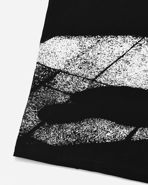 Short sleeve cotton jersey t-shirt in black & white. Rib knit crewneck collar. Graphic printed at front and back. Tonal stitching. 100% cotton. Made in Indonesia.