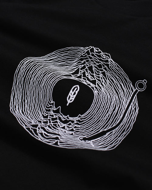 Short sleeve cotton jersey t-shirt in black. Rib knit crewneck collar. Graphic at front. Tonal stitching. 100% cotton. Made in Indonesia.