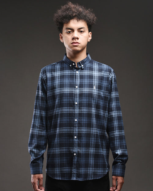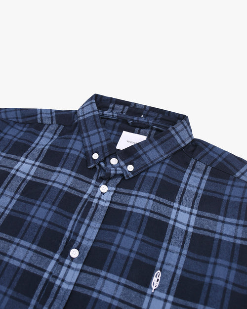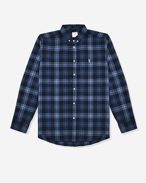 Button-down spread collar. Button closure at front. Signature logo at chest. Single-button barrel cuffs. Tonal stitching.